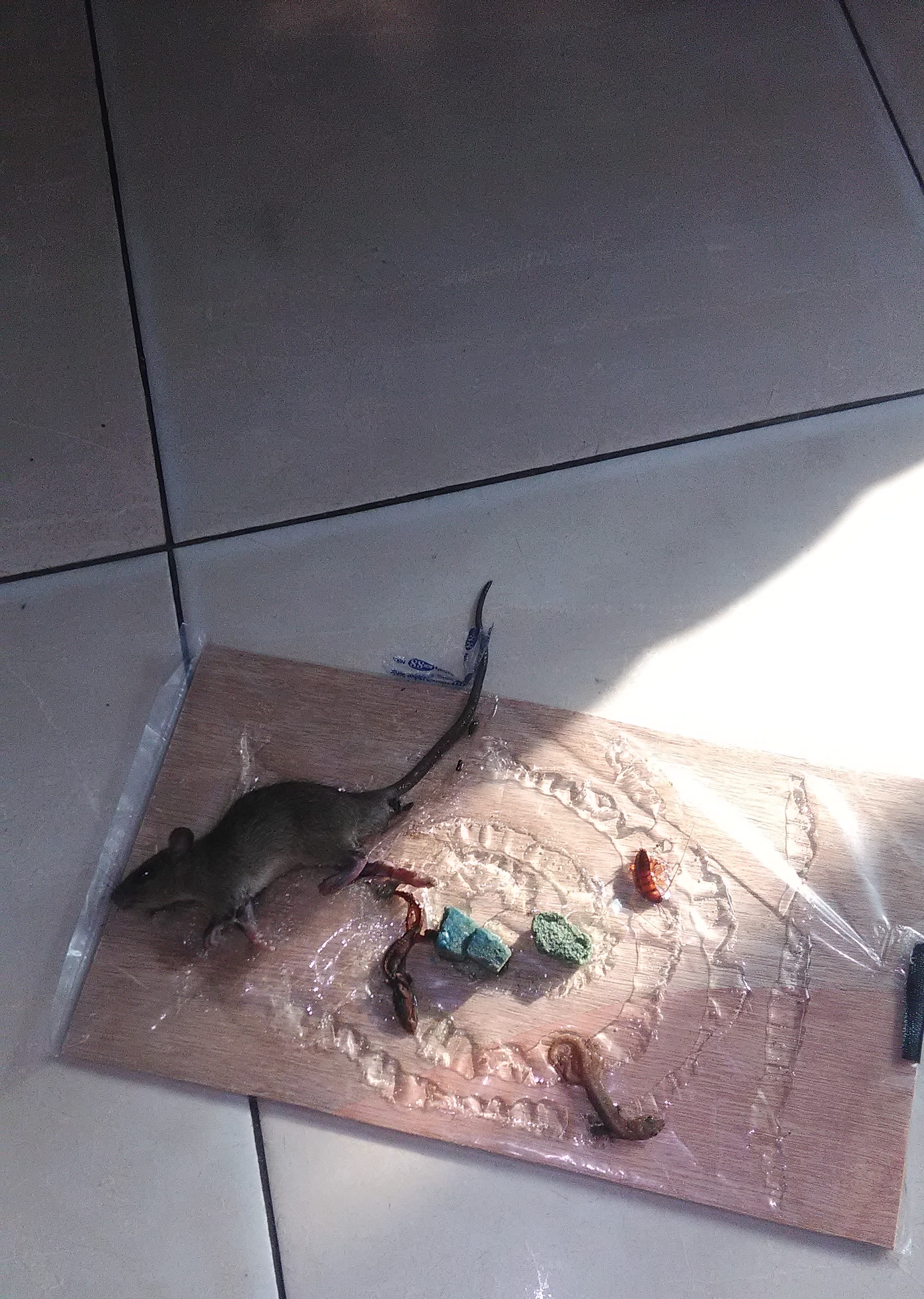 Tanda-tanda keberadaan tikus dapat dilihat dari kotoran dan bau kencingnya, bekas lubang dan keratannya, pengrusakan kemasan pada makanan.
